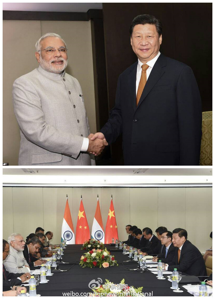 ???? 新華網(wǎng)北京7月15日電 據(jù)新華社“新國際”微博報(bào)道,習(xí)近平主席14日在巴西會見印度總理莫迪。習(xí)近平表示,印中都是世界重要一極,擁有許多戰(zhàn)略契合點(diǎn)。中印用一個聲音說話,全世界都會傾聽。中印攜手合作,全世界都會關(guān)注。無論從雙邊、地區(qū)還是全球?qū)用婵?,中印都是長久戰(zhàn)略合作伙伴,而非競爭對手。