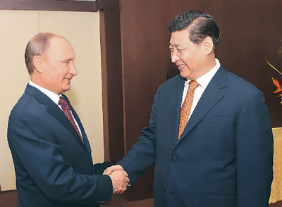 習近平表示,下一步,中俄雙方要繼續(xù)加大相互政治支持,提高合作深度和廣度,更多開展戰(zhàn)略性大項目聯(lián)合研究開發(fā)、聯(lián)合推廣應用、聯(lián)合生產(chǎn)制造,在軍事、安全等領域多采取務實聯(lián)合行動,在人文領域鼓勵和支持聯(lián)合辦學、共同發(fā)展文化。雙方要在國際事務中開展更多共同行動,攜手推動金磚國家合作,提升話語權和影響力,完善全球治理,推動國際關系民主化,促進世界和平與發(fā)展。