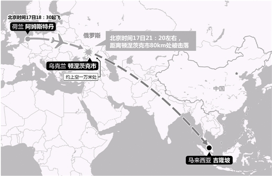 俄羅斯民航部門消息人士告訴路透社記者,這架馬來西亞客機(jī)沒有在預(yù)定時間進(jìn)入俄羅斯領(lǐng)空,墜毀于烏克蘭東部地區(qū)。