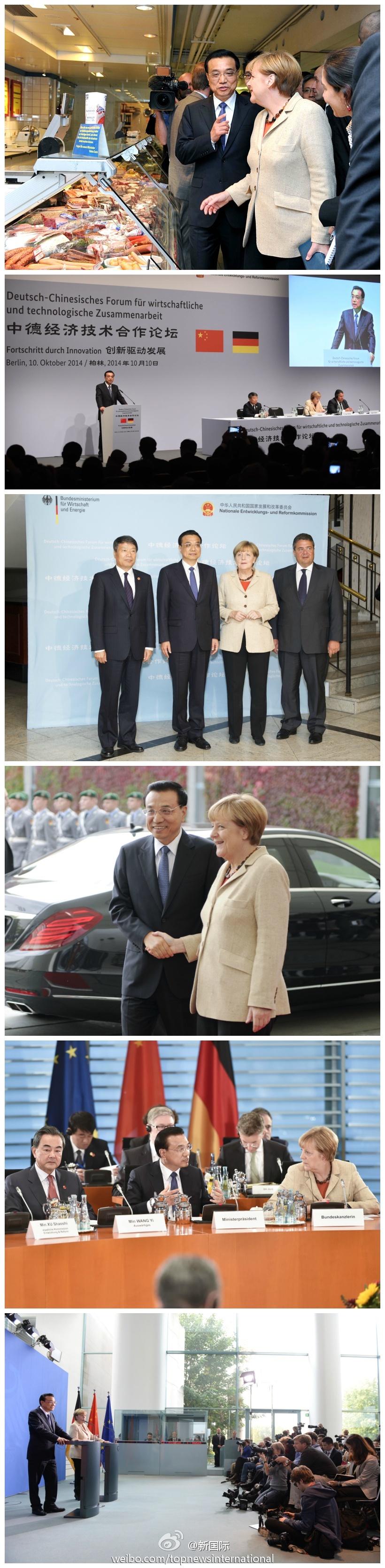 ??? 新華網(wǎng)北京10月11日電? 據(jù)新華社“新國(guó)際”微博報(bào)道,10日,李克強(qiáng)對(duì)德國(guó)訪問日程異常繁忙。兩國(guó)總理共同主持了規(guī)??涨暗牡谌喼械抡枭蹋鱿酥械陆?jīng)濟(jì)技術(shù)論壇、簽字儀式,共見記者,參觀皇家瓷器廠……當(dāng)天默克爾同李總理一起出席了12場(chǎng)活動(dòng),長(zhǎng)達(dá)10個(gè)小時(shí)的深度會(huì)晤,共同規(guī)劃中德務(wù)實(shí)合作升級(jí)版。