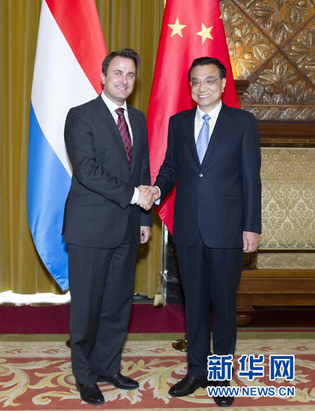 ??? 當(dāng)?shù)貢r(shí)間10月11日上午,中國(guó)國(guó)務(wù)院總理李克強(qiáng)在出席中歐論壇漢堡峰會(huì)前會(huì)見盧森堡首相貝特爾。 新華社記者王曄攝
