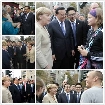 事件:李總理和默總理共同乘車前往出席中德經(jīng)濟(jì)技術(shù)論壇,途中他們臨時(shí)停車,與在街頭的德國(guó)民眾親切交流互動(dòng)。