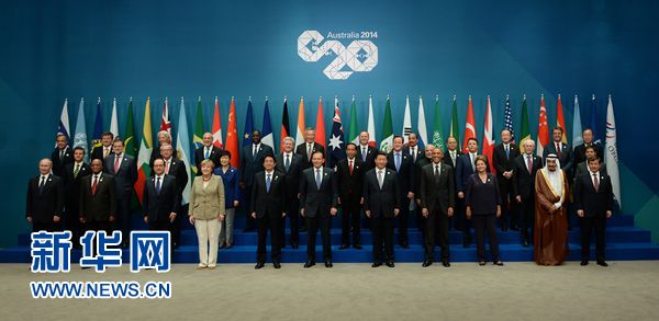 ????11月15日,二十國(guó)集團(tuán)領(lǐng)導(dǎo)人第九次峰會(huì)在澳大利亞布里斯班舉行。國(guó)家主席習(xí)近平出席會(huì)議并發(fā)表題為《推動(dòng)創(chuàng)新發(fā)展實(shí)現(xiàn)聯(lián)動(dòng)增長(zhǎng)》的重要講話。這是習(xí)近平主席同與會(huì)領(lǐng)導(dǎo)人合影。 新華社記者 馬占成 攝