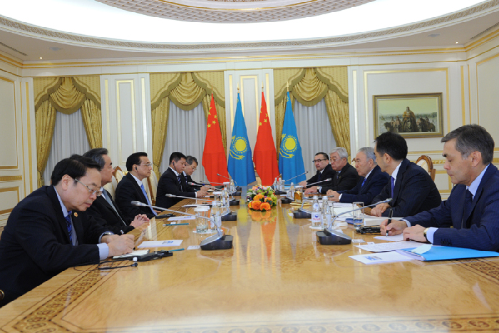 李克強(qiáng)會(huì)見哈薩克斯坦總統(tǒng)納扎爾巴耶夫。新華社 饒愛民 攝