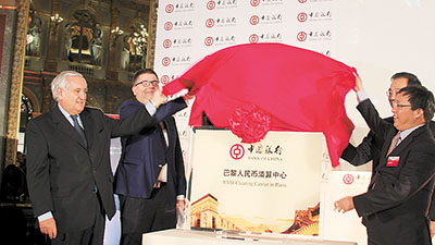 中國銀行巴黎分行人民幣清算中心揭牌。邢雪 攝