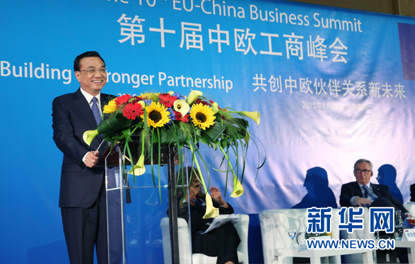 當?shù)貢r間6月29日,國務(wù)院總理李克強在布魯塞爾與歐盟委員會主席容克共同出席中歐工商峰會,并發(fā)表主旨演講。新華社記者 姚大偉攝