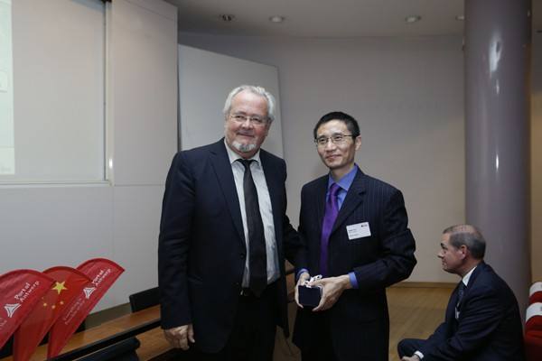 ↑安特衛(wèi)普港務(wù)局主席Marc van Peel向出席活動(dòng)的中國(guó)駐比利時(shí)大使館商務(wù)參贊郭建軍合影。