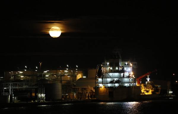 ↑每時每刻不停運(yùn)轉(zhuǎn)的安特衛(wèi)普港夜景。
