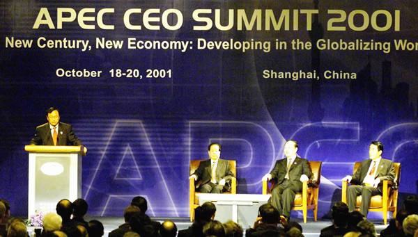 2001年10月18日APEC工商領(lǐng)導(dǎo)人峰會在上海舉行。