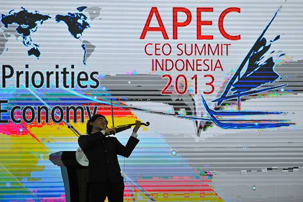 2013年10月6日,一名小提琴演奏家在印度尼西亞巴厘島舉行的2013APEC工商領(lǐng)導(dǎo)人峰會開幕式上演奏。