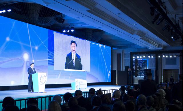 11月18日,國(guó)家主席習(xí)近平在菲律賓馬尼拉出席亞太經(jīng)合組織(APEC)工商領(lǐng)導(dǎo)人峰會(huì)并發(fā)表主旨演講。(新華社記者王曄攝)