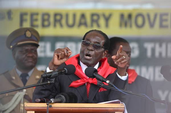 2015年2月28日,總統(tǒng)穆加貝在民眾為他舉行的91歲生日慶典上講話。新華社發(fā)(費(fèi)列蒙攝)