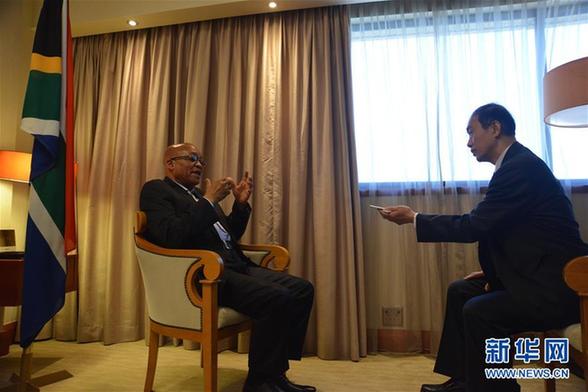 12月6日,南非總統(tǒng)祖馬(左)在南非約翰內(nèi)斯堡接受新華社記者專訪。 “我們非常感謝中國理解非洲的困難和面臨的挑戰(zhàn),感謝中國領(lǐng)導(dǎo)人和中國人民與我們一起并肩面對(duì)。習(xí)近平主席在峰會(huì)上的講話告訴全世界:中國是我們真正的朋友和伙伴,”南非總統(tǒng)祖馬6日在接受新華社專訪時(shí)說。新華社記者趙熙攝