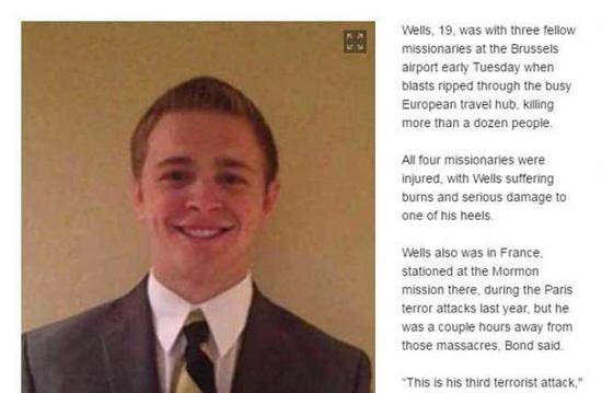 威爾斯的父親告訴媒體,去年巴黎的恐襲時,威爾斯剛好也在法國進(jìn)行傳教任務(wù),而在2013年4月的波士頓馬拉松爆炸時他恰好也在案發(fā)現(xiàn)場,這次在比利時所遇的,是他第三次碰到恐怖攻擊。