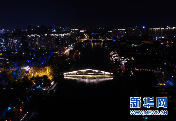 航拍杭州西湖文化廣場(chǎng)附近的京杭大運(yùn)河夜景(5月4日攝)。杭州自古多橋。斷橋、長(zhǎng)橋、錢(qián)塘江大橋、復(fù)興大橋……古樸文雅輝映現(xiàn)代氣派,透出這座城市融匯古今、靈動(dòng)開(kāi)放的底蘊(yùn)。舉世矚目的二十國(guó)集團(tuán)(G20)領(lǐng)導(dǎo)人第十一次峰會(huì)將在這里舉行。有趣的是,這次峰會(huì)的會(huì)標(biāo),也是一座橋——一座由20個(gè)成員搭起的“橋”。這會(huì)是一座怎樣的橋?它能否緩解當(dāng)前全球經(jīng)貿(mào)河道上的種種淤塞?它能否跨越發(fā)達(dá)國(guó)家和發(fā)展中國(guó)家之間的溝溝壑壑? 全球在期待,中國(guó)在行動(dòng)。新華社記者黃宗治攝