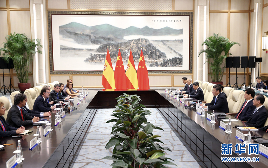 9月5日,國家主席習(xí)近平在杭州會見西班牙首相拉霍伊。新華社記者龐興雷攝