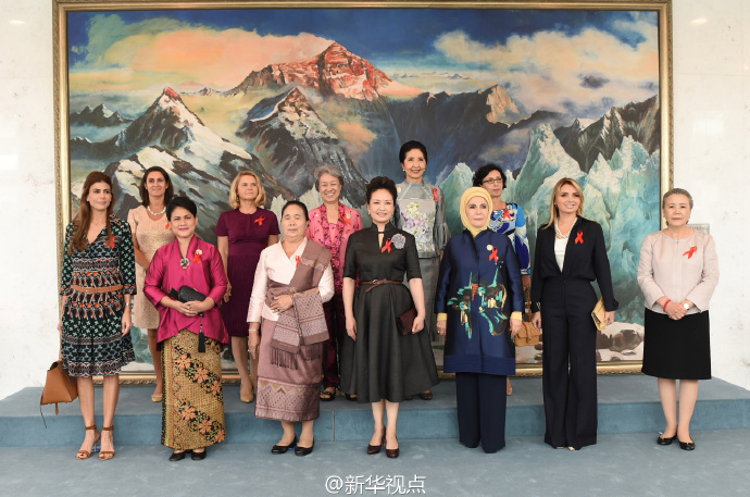 彭麗媛同G20杭州峰會(huì)外方代表團(tuán)團(tuán)長(zhǎng)夫人出席“艾滋病防治宣傳校園行”活動(dòng)