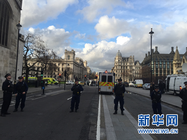 ?。吃拢玻踩?,警方人員在英國(guó)倫敦議會(huì)大廈附近執(zhí)勤。新華網(wǎng)記者桂濤 攝