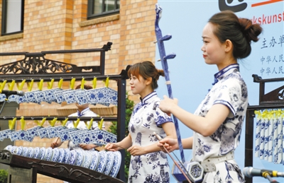 ??? 7月5日,“感知中國(guó)·匠心冶陶”景德鎮(zhèn)陶瓷文化展在柏林開(kāi)幕,中方向德國(guó)觀眾奉獻(xiàn)了一場(chǎng)精彩的瓷樂(lè)表演。記者 管克江攝