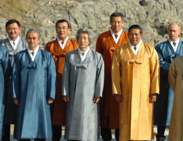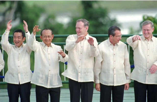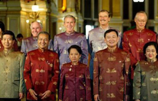 1993年,首屆APEC領(lǐng)導(dǎo)人非正式會(huì)議在美國西雅圖召開。各經(jīng)濟(jì)體領(lǐng)導(dǎo)人不帶助手和隨身翻譯,不穿正裝。從那以后,在一年一度的APEC領(lǐng)導(dǎo)人非正式會(huì)議期間,東道主通常會(huì)為與會(huì)領(lǐng)導(dǎo)人提供特別制作的當(dāng)?shù)貍鹘y(tǒng)服裝,在宣介東道主傳統(tǒng)文化的同時(shí),也體現(xiàn)“亞太大家庭”的理念。