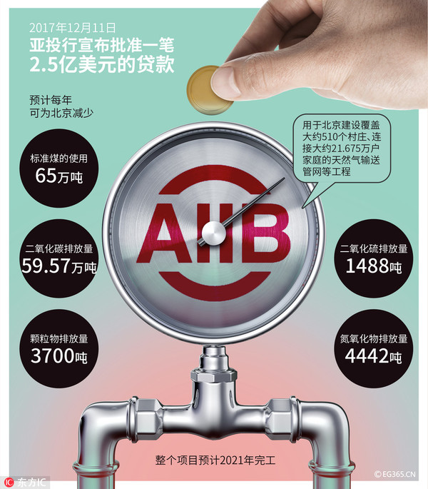 【首個(gè)對(duì)華項(xiàng)目落戶(hù)北京】2017年12月11日,亞投行首個(gè)對(duì)華項(xiàng)目落戶(hù)北京,用于天然氣輸送管網(wǎng)建設(shè)等工程,助力“北京藍(lán)”。秉持“簡(jiǎn)潔、廉潔、清潔”的核心價(jià)值觀(guān)的亞投行,贏(yíng)得世界廣泛信任。