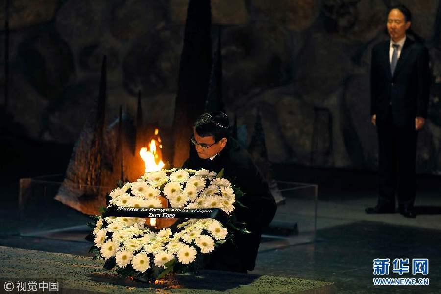 12月25日,耶路撒冷,日本外相河野太郎訪問耶路撒冷,參觀大屠殺紀(jì)念館,獻(xiàn)花悼念死難者。(圖片來源:視覺中國(guó))