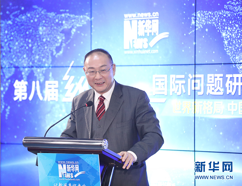 12月26日,新華網(wǎng)第八屆“縱論天下”國(guó)際問(wèn)題研討會(huì)成功舉行。圖為中國(guó)人民大學(xué)國(guó)際關(guān)系學(xué)院副院長(zhǎng)、教授金燦榮在主旨演講。新華網(wǎng)發(fā)(郭小天攝)。