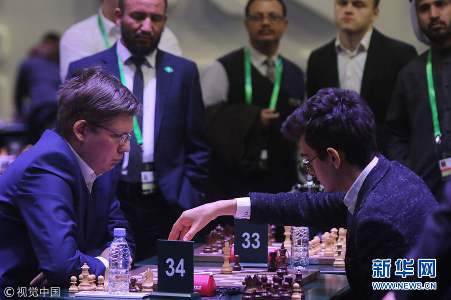 12月26日,沙特阿拉伯利雅得,世界快棋錦標(biāo)賽在當(dāng)?shù)嘏e行。國(guó)際象棋聯(lián)合會(huì)24日說(shuō),7名以色列選手因簽證申請(qǐng)?jiān)馍程匕⒗芙^無(wú)緣參賽。(圖片來(lái)源:視覺(jué)中國(guó))