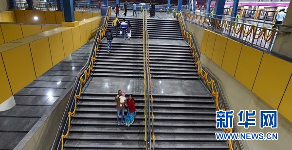 12月25日,在印度首都新德里洋紅色地鐵線(xiàn),人們站在站臺(tái)臺(tái)階上駐足留影。當(dāng)日,連接新德里及其衛(wèi)星城諾伊達(dá)(Noida)之間的洋紅色地鐵線(xiàn)建成通車(chē)。這條線(xiàn)路全長(zhǎng)12.64公里。德里地鐵公司計(jì)劃未來(lái)提高這條地鐵線(xiàn)路自動(dòng)化水平,以“無(wú)人值守模式”運(yùn)行。目前,新德里運(yùn)營(yíng)地鐵線(xiàn)路共有7條,分別用顏色命名,包括紅色、黃色、藍(lán)色、綠色、橙色、紫羅蘭和洋紅色。新華網(wǎng)發(fā) (張迺杰 攝)