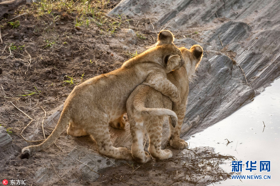 1月2日?qǐng)?bào)道(具體拍攝時(shí)間不詳),肯尼亞馬賽馬拉國(guó)家保護(hù)區(qū),64歲的攝影師Ingo Gelach在當(dāng)?shù)嘏臄z到一組有趣又暖心的照片。畫(huà)面中,兩頭小獅子站在水邊,似乎正考慮跨越面前的水域。其中一頭獅子用前腳搭在同伴的肩膀上,似乎在表達(dá)友好,又似是在鼓勵(lì)同伴不要害怕,勇敢地跨過(guò)去。(圖片來(lái)源:東方IC)