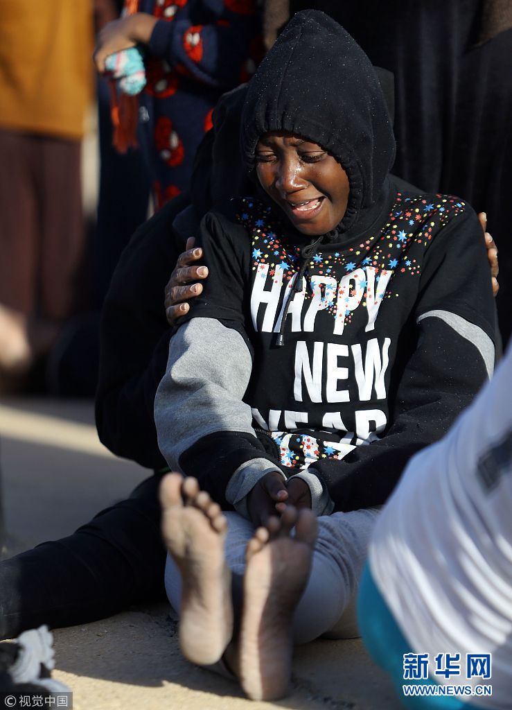當(dāng)?shù)貢r(shí)間2018年1月7日,利比亞的黎波里,獲救的非法移民。6日上午在利比亞附近海域發(fā)生了一起非法移民船傾覆事故,在巡邏飛機(jī)發(fā)現(xiàn)該遇險(xiǎn)船只后,周圍的意大利海岸警衛(wèi)隊(duì)及意大利海軍船只迅速駛近實(shí)施救援,成功救起80余人,同時(shí)發(fā)現(xiàn)了8名遇難者。據(jù)外媒報(bào)道,這艘小船從該國海岸出發(fā)時(shí)載有超過100人。(圖片來源:視覺中國)