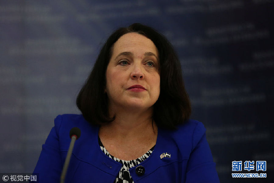 當(dāng)?shù)貢r(shí)間2018年1月8日,薩爾瓦多圣薩爾瓦多,美國(guó)駐薩爾瓦多大使Jean Manes出席新聞發(fā)布會(huì)。(圖片來(lái)源:視覺(jué)中國(guó))