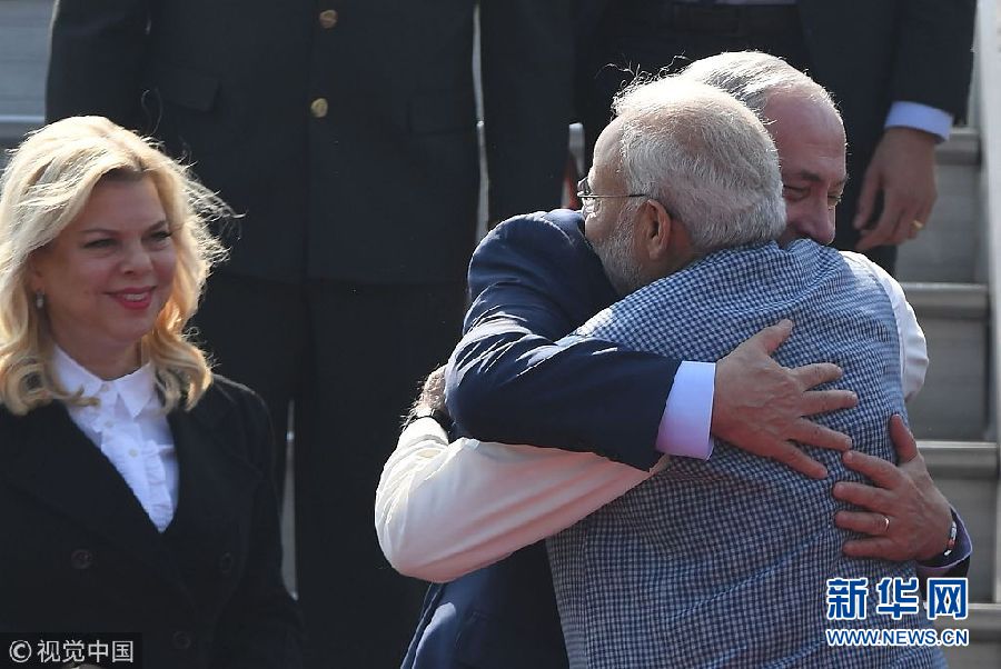 當(dāng)?shù)貢r間1月14日,印度新德里,以色列總理內(nèi)塔尼亞胡抵達印度展開訪問。(圖片來源:視覺中國)