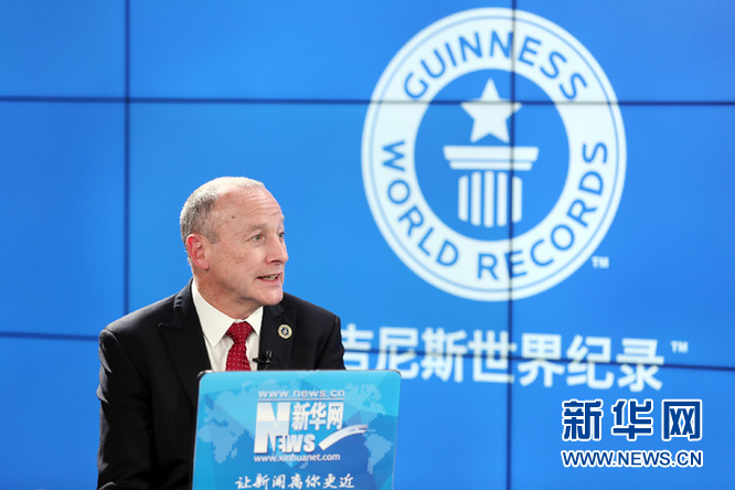 吉尼斯世界紀錄全球總裁阿里斯塔爾·理查茲接受新華網訪談。新華網發(fā) 郭小天攝