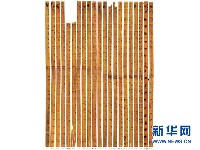 資料圖片:清華大學收藏的戰(zhàn)國竹簡《算表》,經認證為“最早的十進制乘法表”。(吉尼斯世界紀錄供圖)