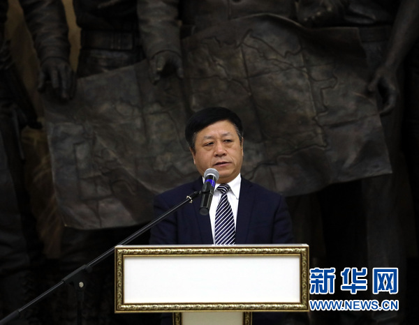 中國駐哈薩克斯坦大使張漢暉在圖片展開幕式上致辭。新華網(wǎng)發(fā)