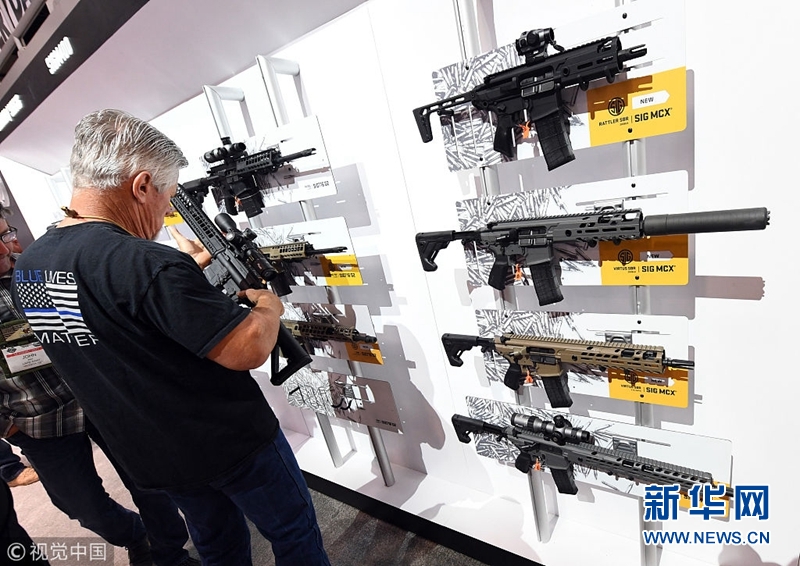 當?shù)貢r間2018年1月23日,美國拉斯維加斯,美國全國射擊運動基金會(NSSF)舉辦槍支展銷會。(圖片來源:視覺中國)