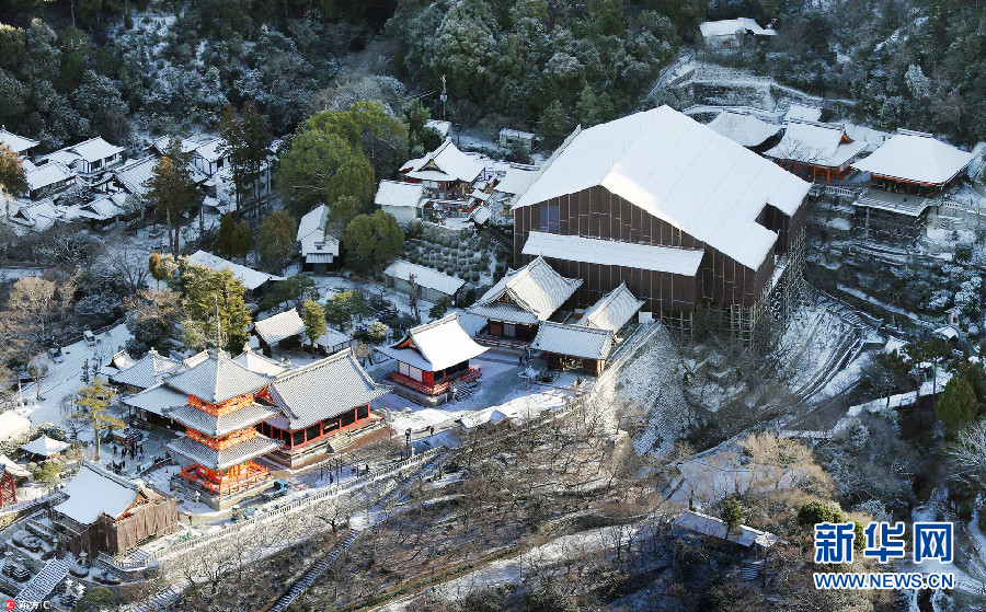 1月25日,大雪過(guò)后,日本京都一片銀裝素裹,金閣寺、清水寺披上“雪衣”。(圖片來(lái)源:東方IC)