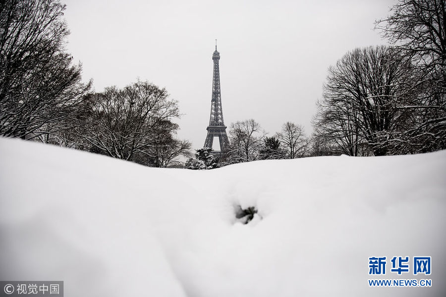 法國巴黎降下罕見大雪 埃菲爾鐵塔臨時關(guān)閉