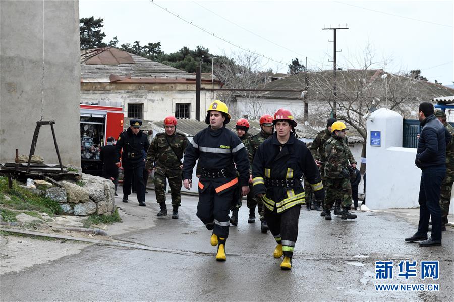 3月2日,在阿塞拜疆首都巴庫,消防人員趕往火災(zāi)現(xiàn)場救援。 新華社發(fā)(巴巴耶夫攝)