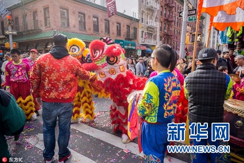 在美國各地的唐人街,節(jié)日氣氛尤其濃厚,鑼鼓震天、鞭炮齊鳴,舞獅隊伍走上街頭,祈愿人們生活紅紅火火,運(yùn)氣越來越好。