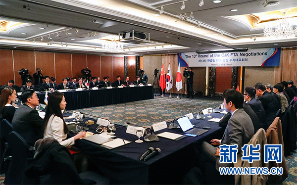 3月23日,中日韓自貿(mào)區(qū)第十三輪談判首席談判代表會議在韓國首爾舉行。新華社記者 王婧嬙 攝