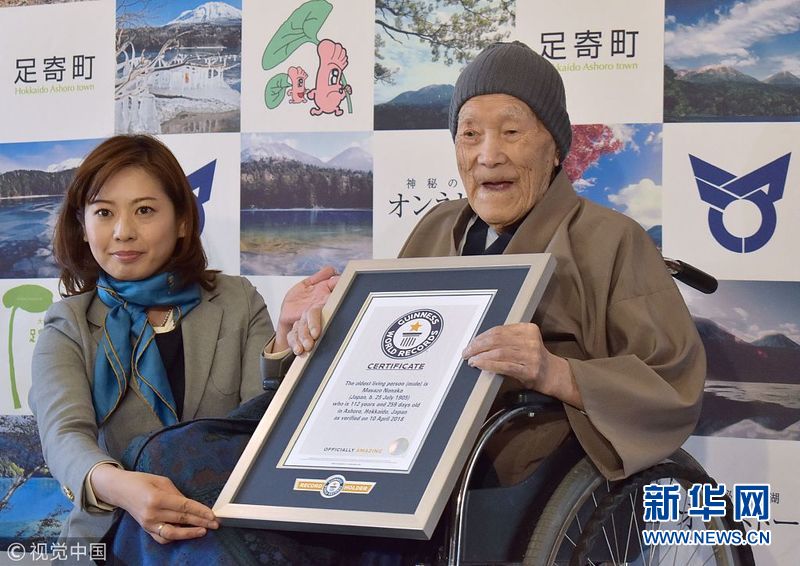 4月10日,日本足寄,日本男子Masazo Nonaka以112歲259天的年齡,獲得吉尼斯認(rèn)證的世界目前在世年齡最長的男性。 (圖片來源:視覺中國)