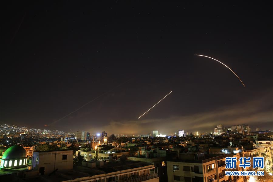 這是4月14日拍攝的遭受襲擊的敘利亞首都大馬士革。敘利亞國(guó)家電視臺(tái)14日?qǐng)?bào)道說(shuō),當(dāng)?shù)貢r(shí)間14日凌晨,美國(guó)等國(guó)對(duì)敘首都大馬士革發(fā)起軍事行動(dòng)。 新華社/美聯(lián)