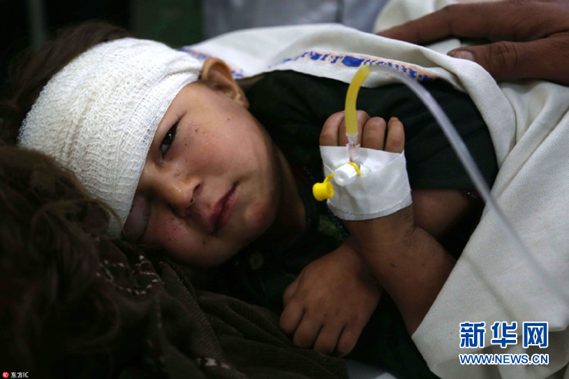 當(dāng)?shù)貢r(shí)間2018年4月20日,阿富汗賈拉拉巴德,受傷的兒童在醫(yī)院接受治療。4月19日,當(dāng)?shù)匕l(fā)生爆炸事故,致至少5名平民死亡,14人受傷。(圖片來源:東方IC)