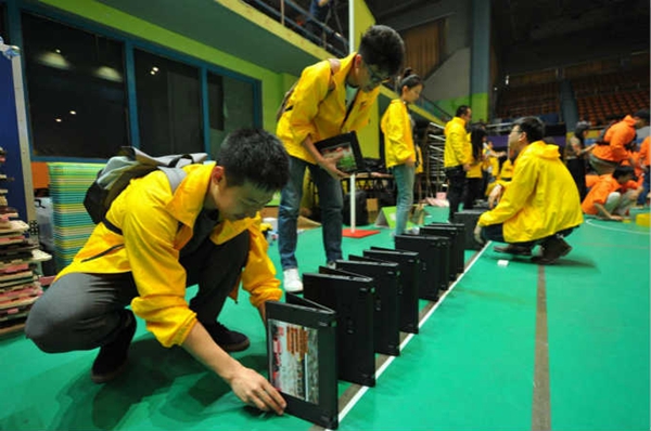 據(jù)吉尼斯世界紀(jì)錄官網(wǎng)報(bào)道,近日,聯(lián)想集團(tuán)在北京航空航天大學(xué)體育館舉辦了以“同心聚力,勇往直前”為主題的誓師大會(huì),1300名聯(lián)想員工參加了此次大會(huì),并創(chuàng)造了一項(xiàng)新的吉尼斯世界紀(jì)錄稱(chēng)號(hào)。在吉尼斯世界紀(jì)錄認(rèn)證官的見(jiàn)證下,所有員工歷時(shí)兩小時(shí),用520臺(tái)筆記本電腦成功創(chuàng)造“以多米諾骨牌形式擺放并推倒最多筆記本電腦”的新紀(jì)錄。