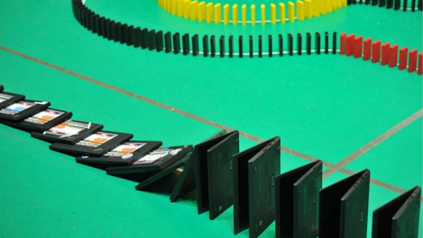 此次的多米諾挑戰(zhàn)除了520臺(tái)筆記本外,還準(zhǔn)備了45000枚骨牌?;顒?dòng)主題以及工程師們標(biāo)志性的代碼都成為了多米諾骨牌整體設(shè)計(jì)的一部分。最終,所有多米諾骨牌和筆記本電腦全部被成功推倒。