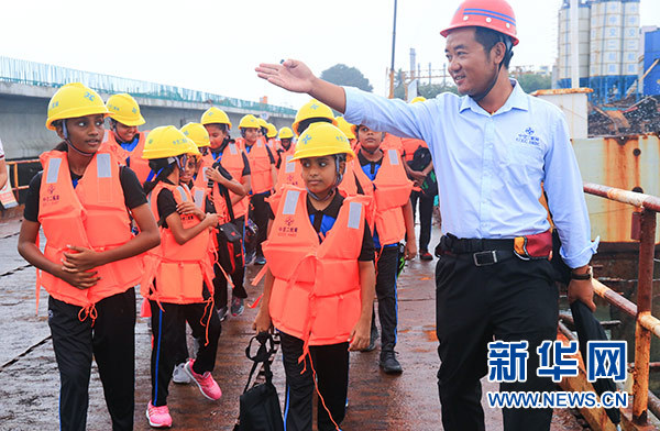 “大橋還有多久能建好?”“建橋是不是很難?”“工人叔叔們有沒有危險(xiǎn)?”……孩子們整齊地排成兩列走在大橋上,一邊好奇地四處望著,一邊連珠炮似的向身邊的中國工人叔叔發(fā)問。