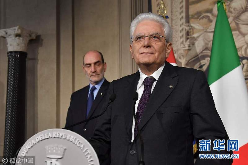 當(dāng)?shù)貢r間2018年5月7日,意大利羅馬,意大利總統(tǒng)塞爾焦·馬塔雷拉7日召集新一輪組閣談判并出席新聞發(fā)布會。如果所有組閣努力失敗,馬塔雷拉將授權(quán)組建技術(shù)官僚組成的過渡政府。(圖片來源:視覺中國)