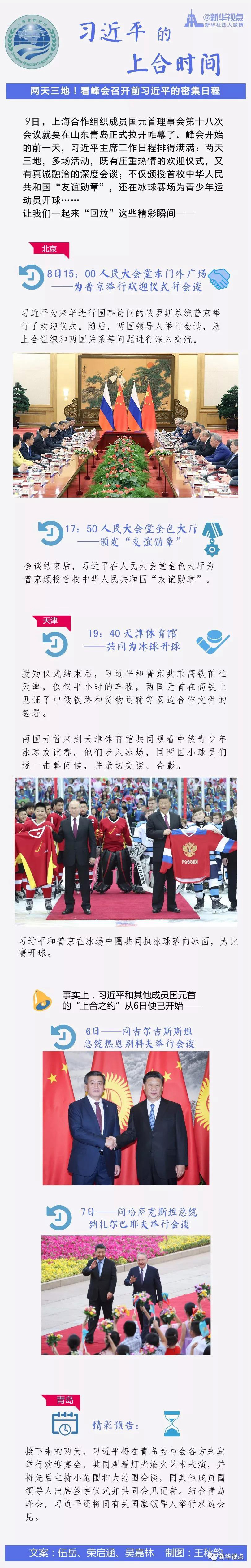 9日,上海合作組織成員國(guó)元首理事會(huì)第十八次會(huì)議就要在山東青島正式拉開(kāi)帷幕了。峰會(huì)開(kāi)始的前一天,習(xí)近平主席工作日程排得滿(mǎn)滿(mǎn):兩天三地,多場(chǎng)活動(dòng),既有莊重?zé)崆榈臍g迎儀式,又有真誠(chéng)融洽的深度會(huì)談;不僅頒授首枚中華人民共和國(guó)“友誼勛章”,還在冰球賽場(chǎng)為青少年運(yùn)動(dòng)員開(kāi)球……讓我們一起來(lái)“回放”這些精彩瞬間????